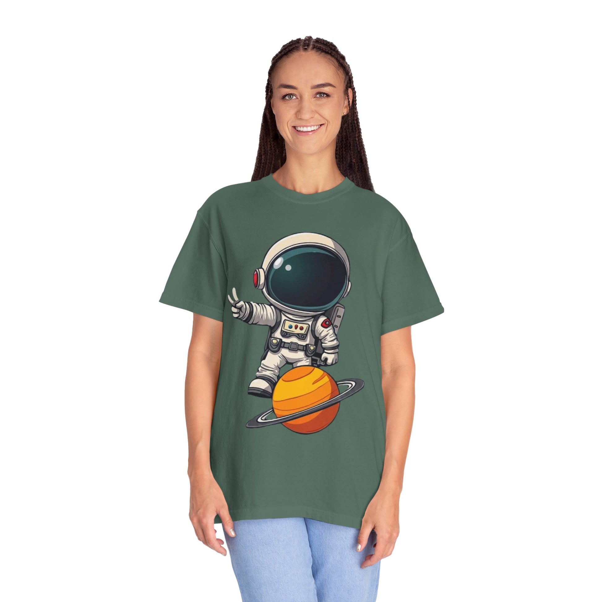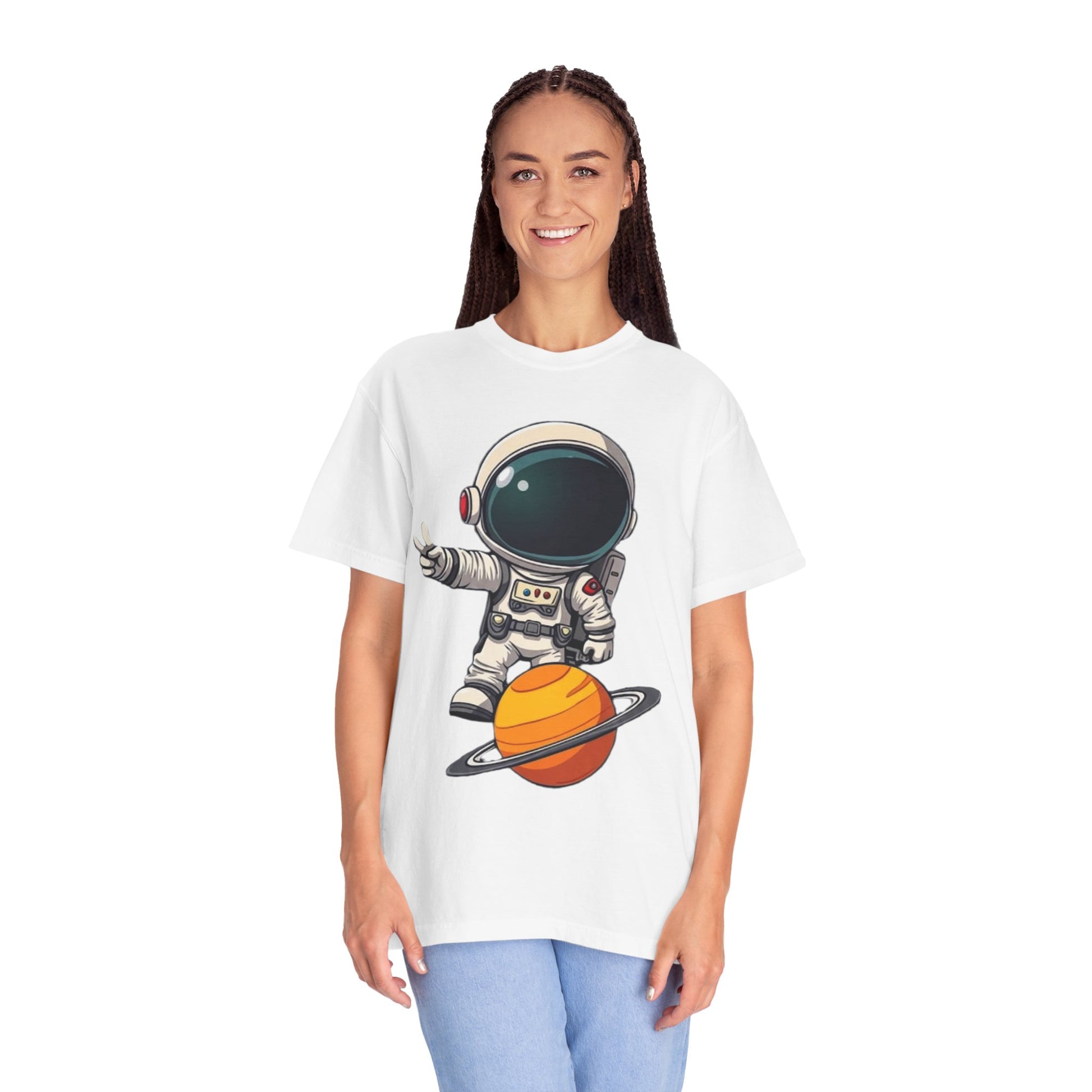 Astronaut on Saturn T-Shirt — Cute Space Explorer Graphic Tee