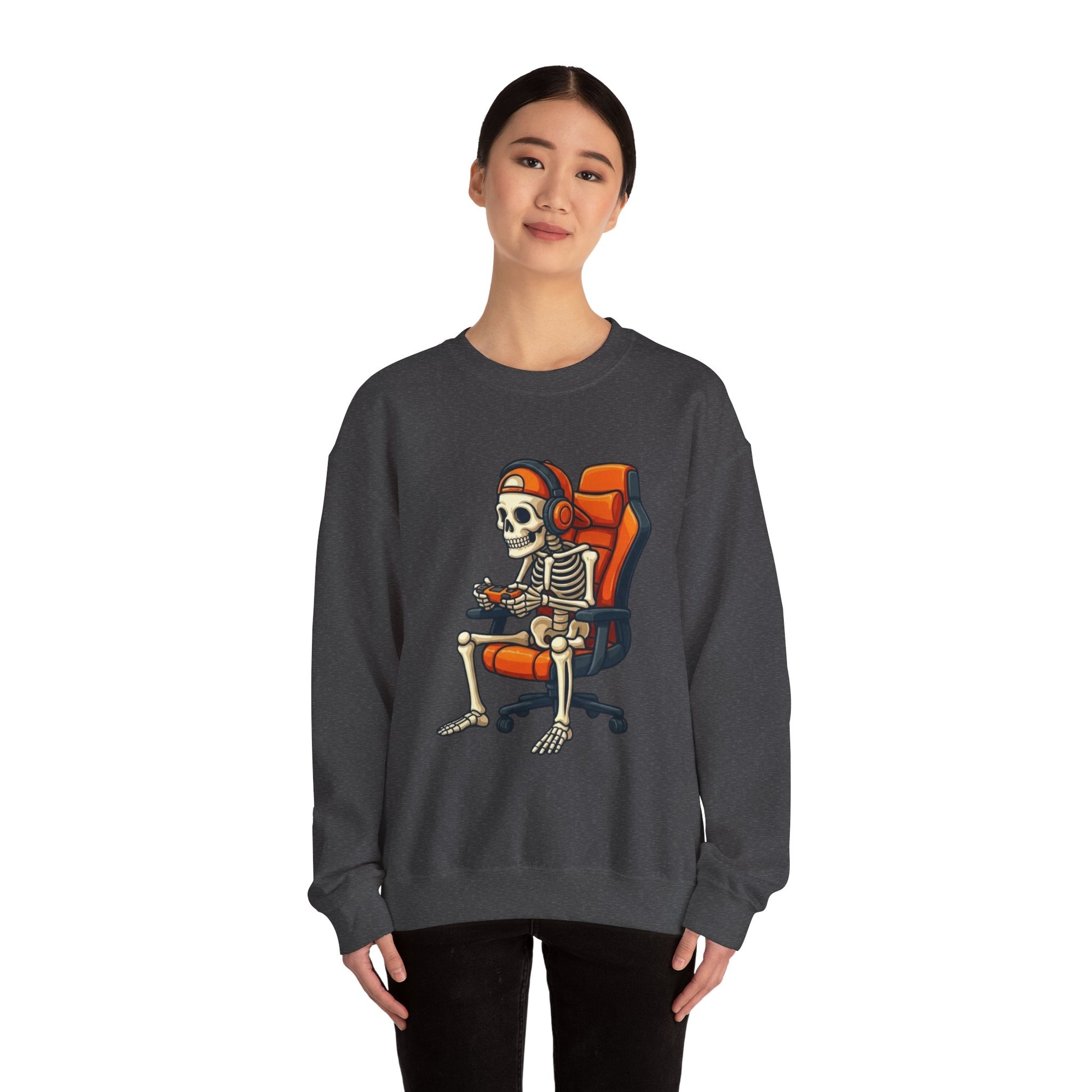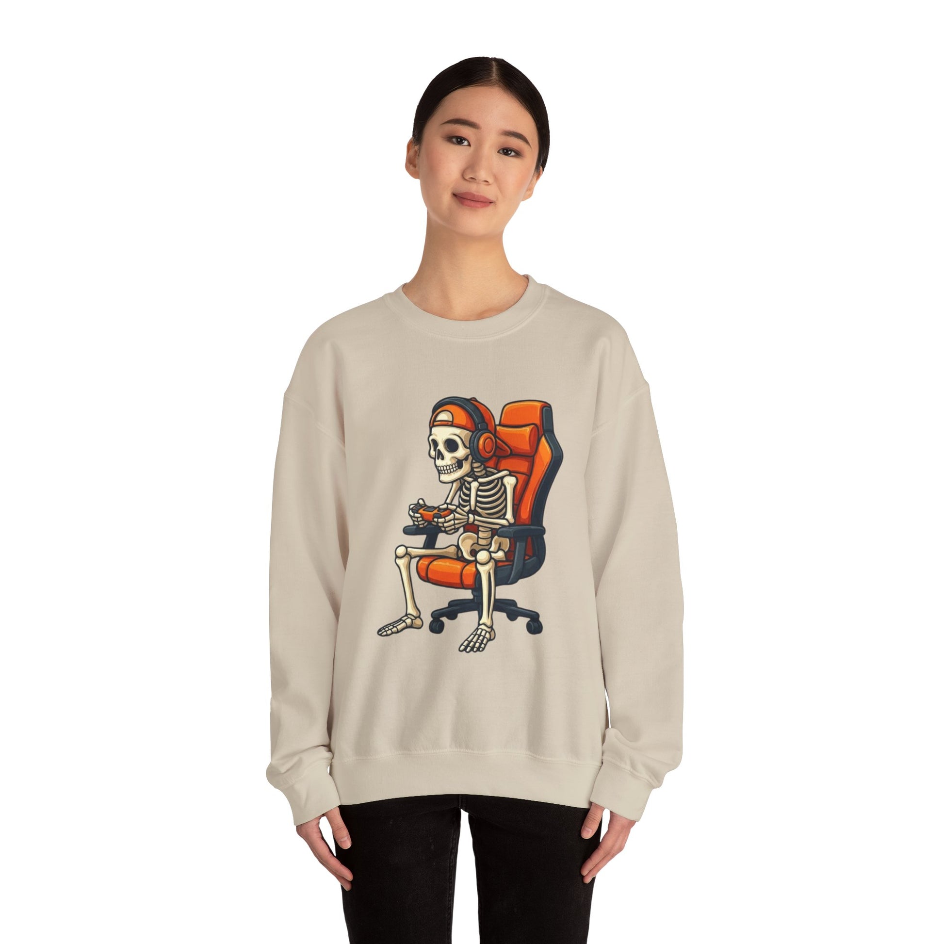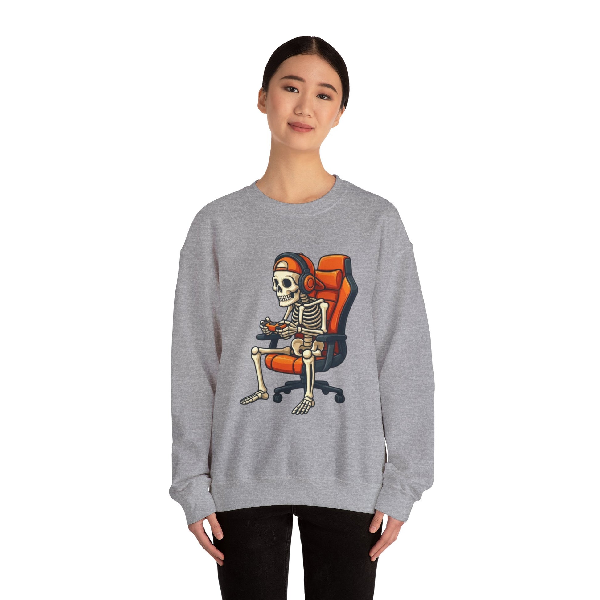 Gamer Skeleton Crewneck Sweatshirt – Retro Skull Gaming Chair Design