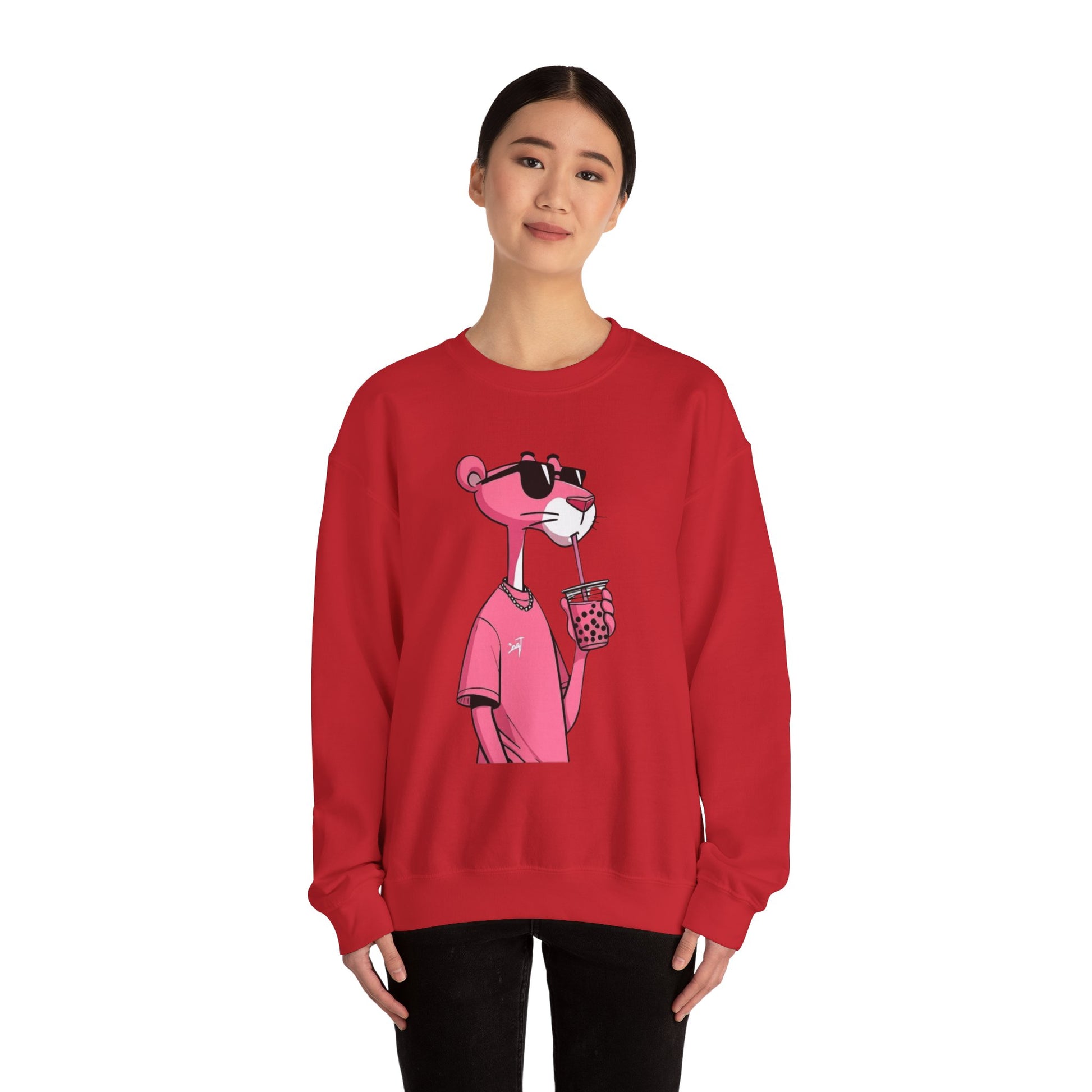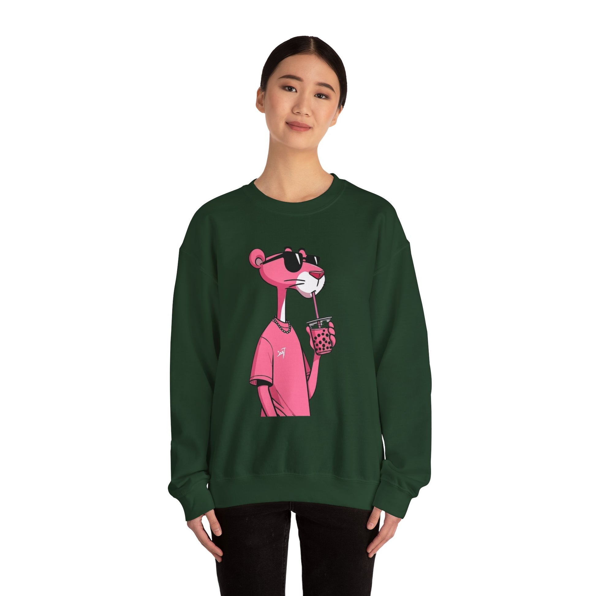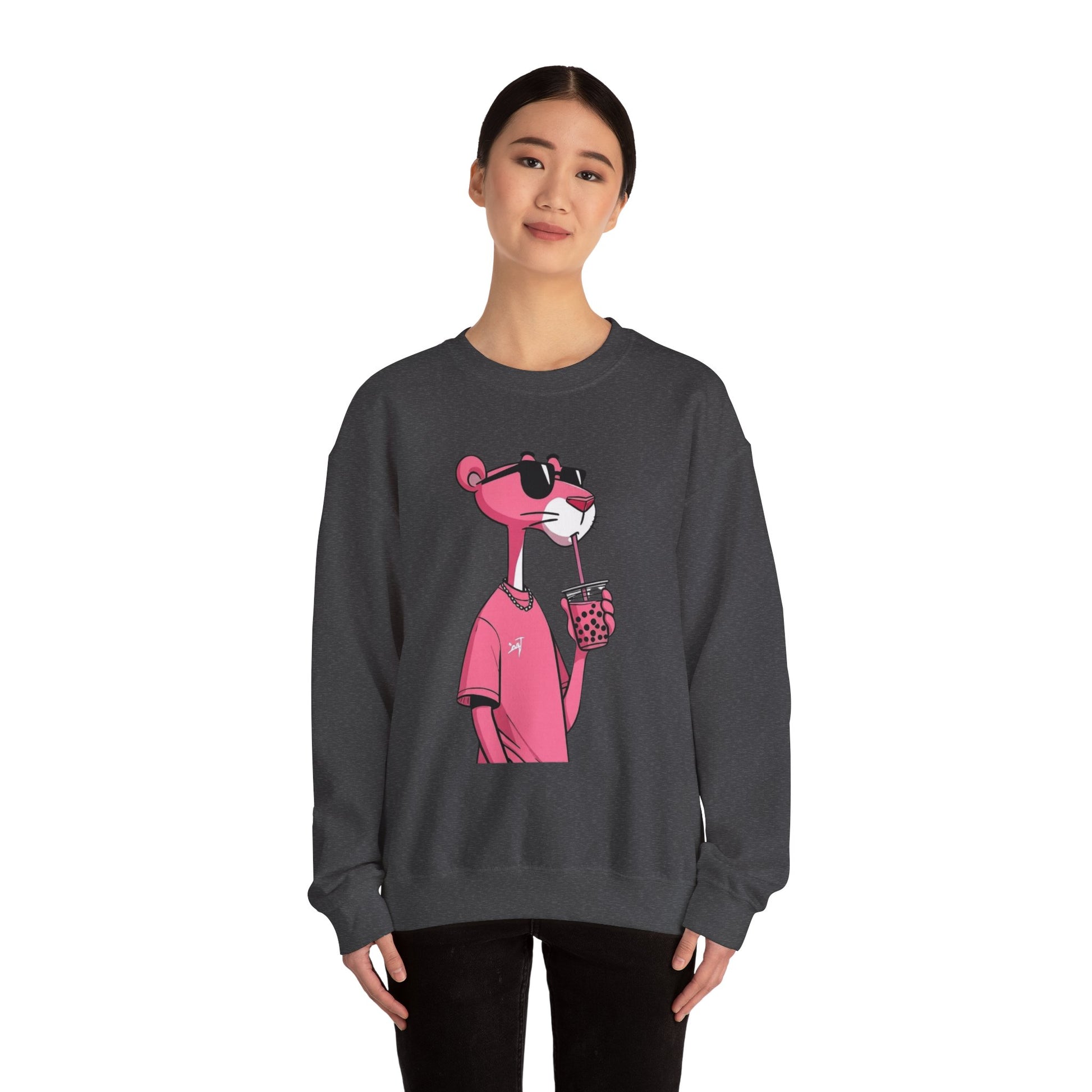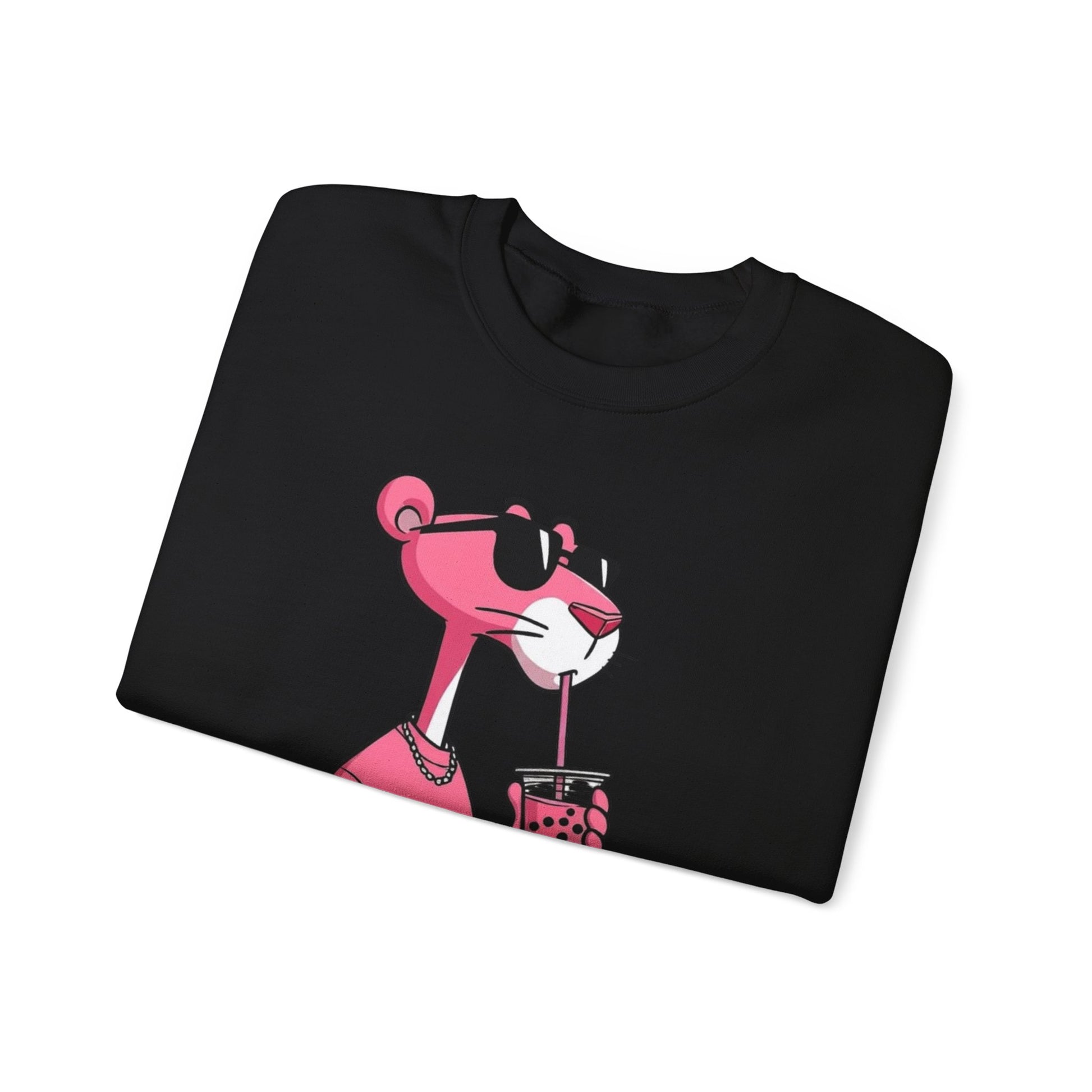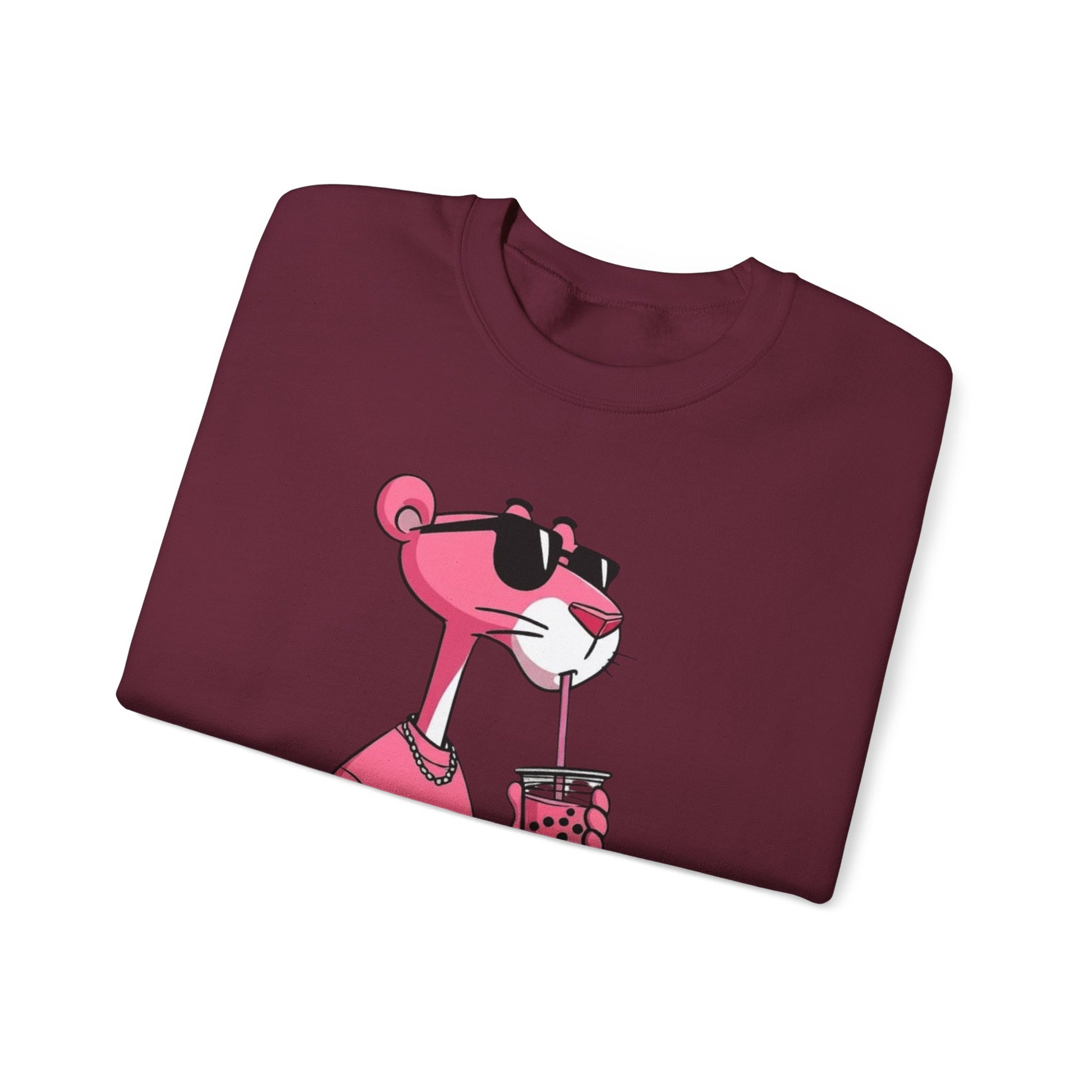 Pink Panther Cartoon Sweatshirt — Cool Sunglasses Bubble Tea Graphic Crewneck