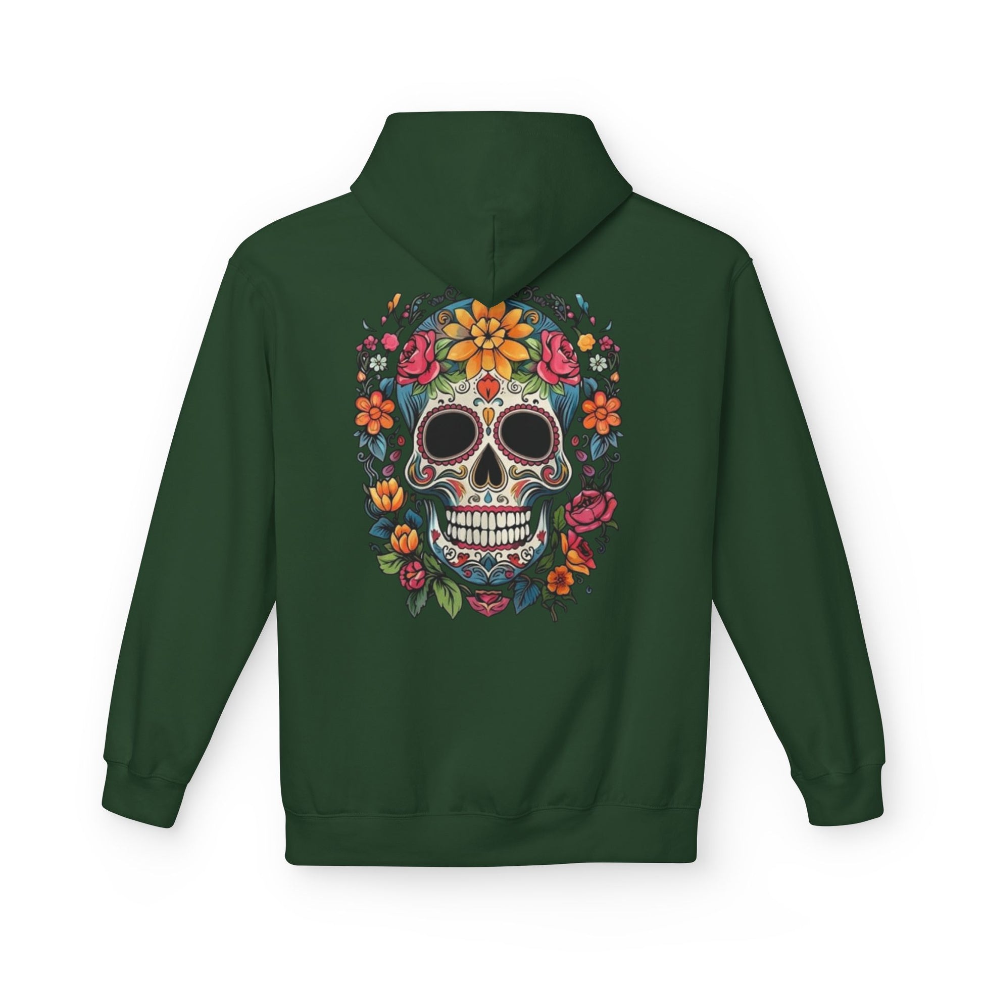 Sugar Skull Floral Hoodie — Day of the Dead Mexican Skull Pullover